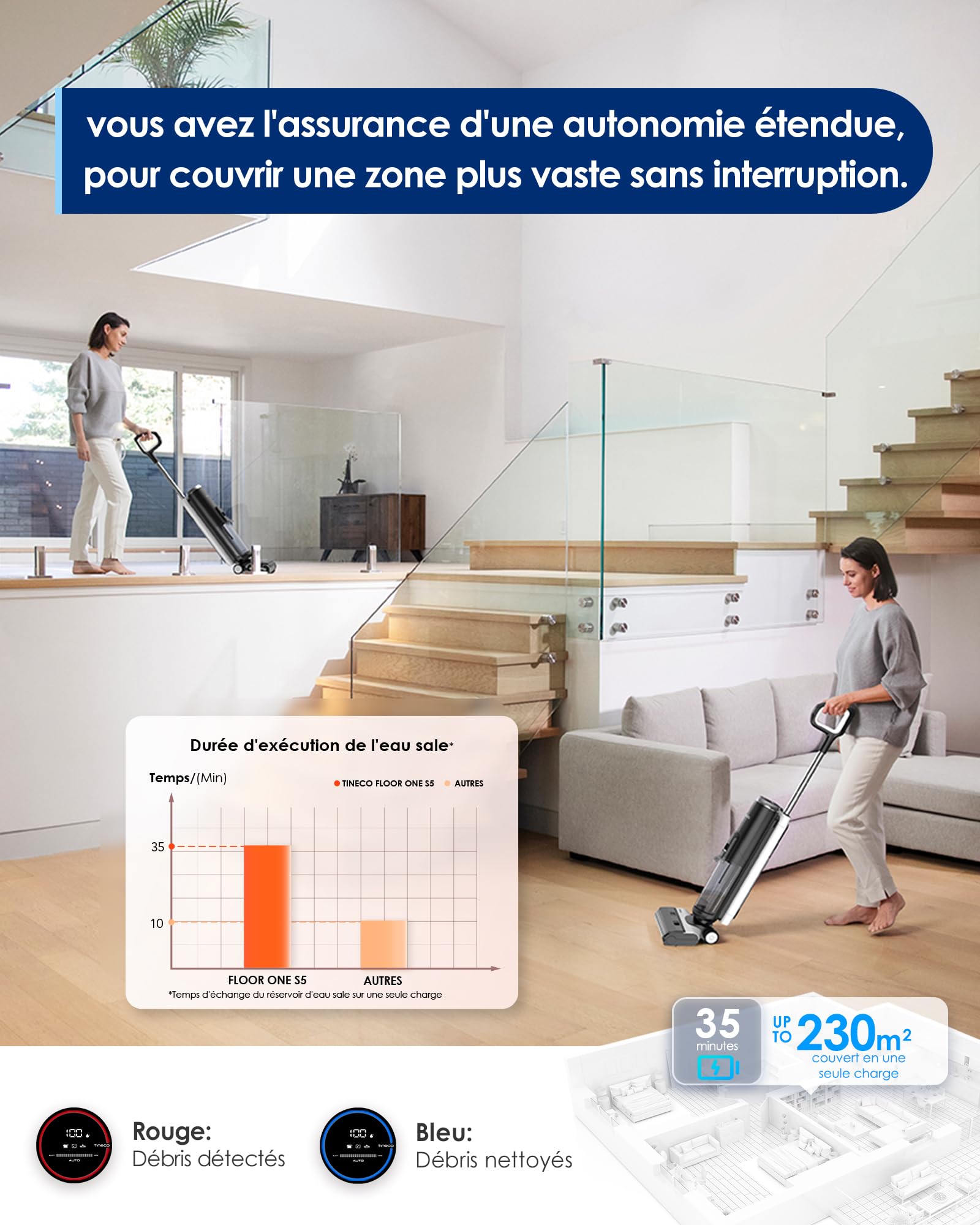 🔸 Gain de temps : Plus besoin de balai ni de serpillière – un seul appareil suffit !